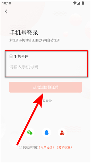 3、在登錄頁面,輸入手機號碼后,點擊獲取短信驗證碼。