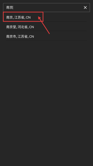 3、在搜索結(jié)果中選擇南京, 江蘇省, CN,進入南京天氣詳情頁面。
