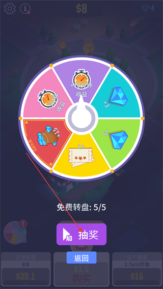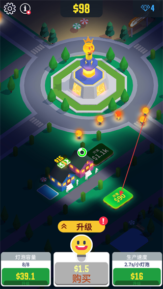 1、游戲內(nèi)可以通過點(diǎn)擊下方的升級按鈕進(jìn)行小燈泡的屬性提升。