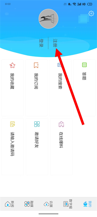 2、在個人中心頁面,點(diǎn)擊注冊,進(jìn)入注冊流程。