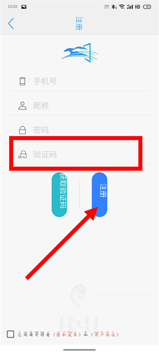 4、輸入驗(yàn)證碼,勾選同意后,點(diǎn)擊注冊按鈕,完成賬號注冊。