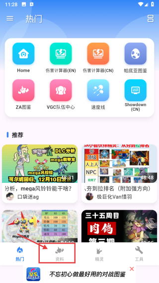 1、打開(kāi)游戲圖鑒類APP,點(diǎn)擊底部資料選項(xiàng),進(jìn)入資料頁(yè)面。