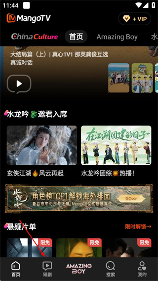 1、在芒果TV首頁,點擊下方短劇選項,進入短劇頁面。