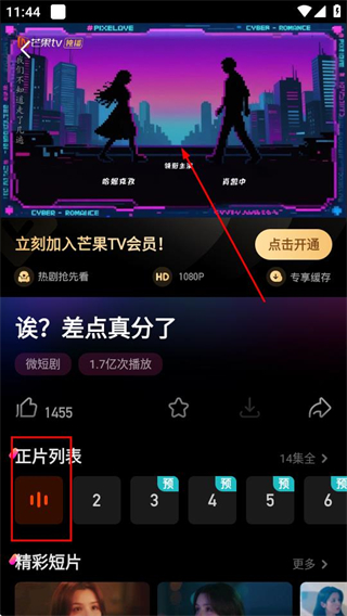 2、在短劇頁面,選擇感興趣的短劇,進入短劇播放頁面。