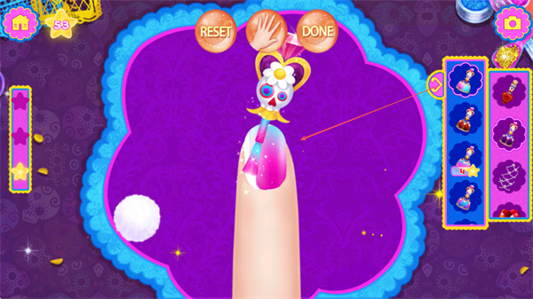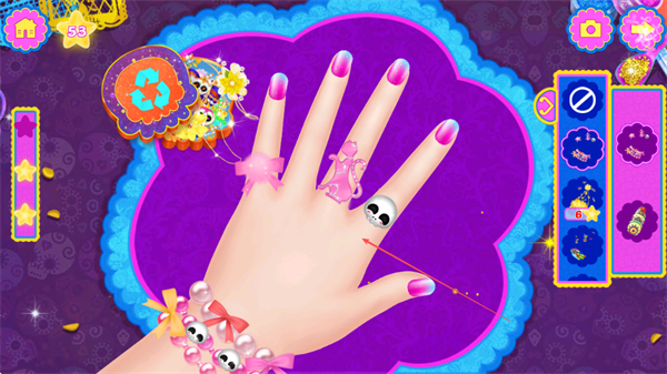 2、選擇不同的美甲裝飾,為指甲增添獨(dú)特圖案。