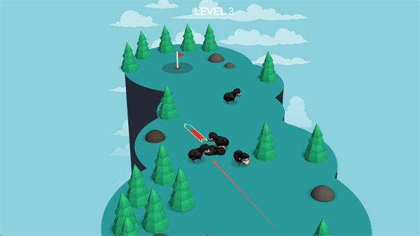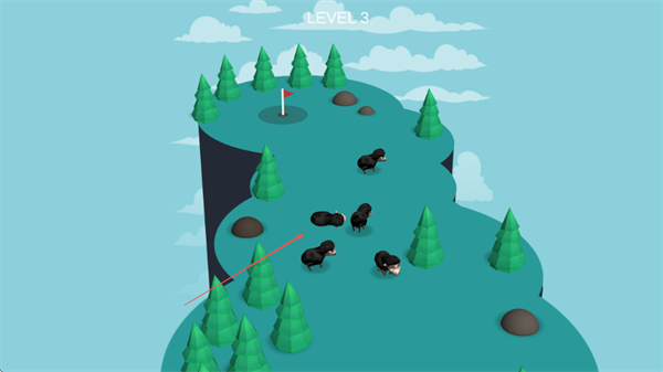 2、避開樹木和石塊,精準擊打羊群,使其向目標移動。