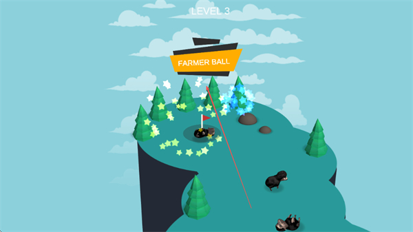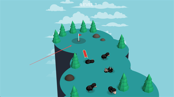 3、將羊擊入洞口,完成關(guān)卡目標,注意控制擊打力度和方向。