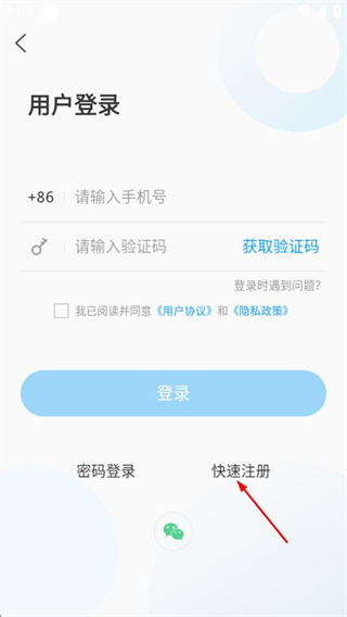3、在用戶登錄頁面,點(diǎn)擊快速注冊選項(xiàng),進(jìn)入用戶注冊頁面。