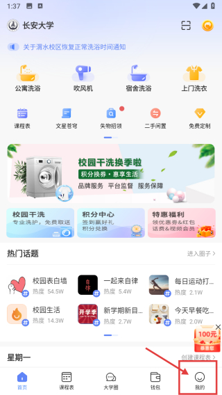 1、打開校園服務(wù)類APP,點(diǎn)擊底部我的選項(xiàng),進(jìn)入個(gè)人中心頁(yè)面。