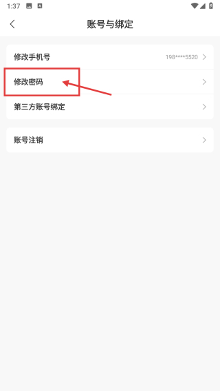 4、在賬號(hào)與綁定管理頁(yè)面,點(diǎn)擊修改密碼選項(xiàng),推進(jìn)密碼修改流程。