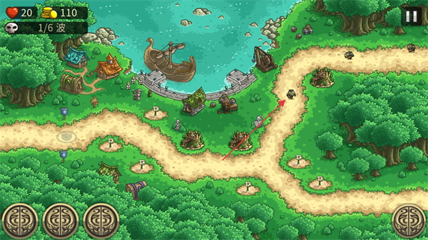 1、在敵人行進的路徑旁布置防御塔,如樹樁塔,攻擊來犯的敵人,獲取金幣。