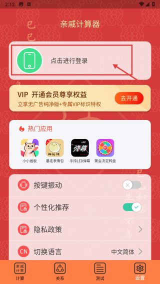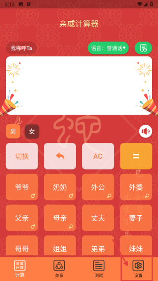 1、打開親戚關(guān)系計算類APP,點擊底部設(shè)置選項,進入設(shè)置頁面。
