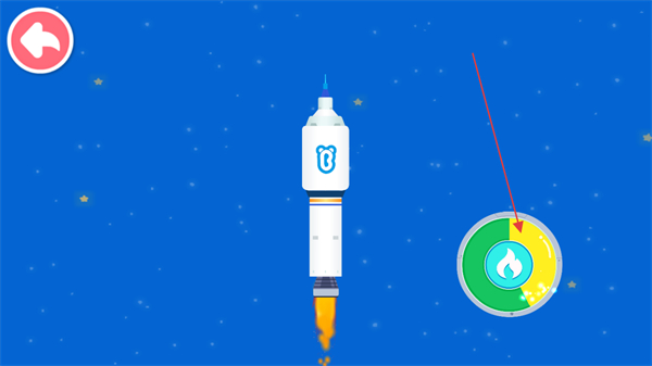 3、進(jìn)入火箭后,在火箭發(fā)射倉中點(diǎn)擊中間的橙色按鈕啟動(dòng)火箭。