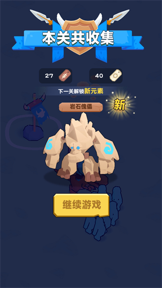 4、通關(guān)后可收集資源,解鎖新元素如巖石傀儡,提升戰(zhàn)力,繼續(xù)挑戰(zhàn)下一關(guān)。