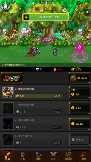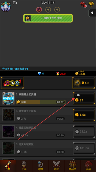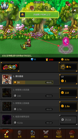 3、升級(jí)任務(wù),如修繕騎士團(tuán)武器,提升任務(wù)獎(jiǎng)勵(lì),獲取更多金幣和資源。
