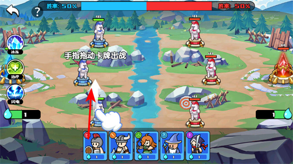 2、部署卡牌,卡牌部署是構(gòu)建防線的核心步驟,部署后可在戰(zhàn)場布置不同兵種的卡牌,形成攻防體系以對抗敵方。