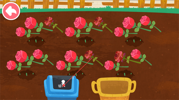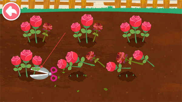 2、拖動剪刀從根部開始剪裁花園里所有的花朵,將他們的根部保留在土里繼續(xù)生根。