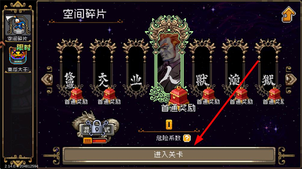 4、擊敗關(guān)卡內(nèi)所有敵人或完成特定目標(biāo)后,可進(jìn)入下一層關(guān)卡,不斷挑戰(zhàn)更難的關(guān)卡,獲取更豐厚的獎(jiǎng)勵(lì),同時(shí)解鎖新的角色和玩法內(nèi)容。