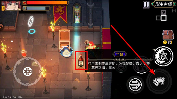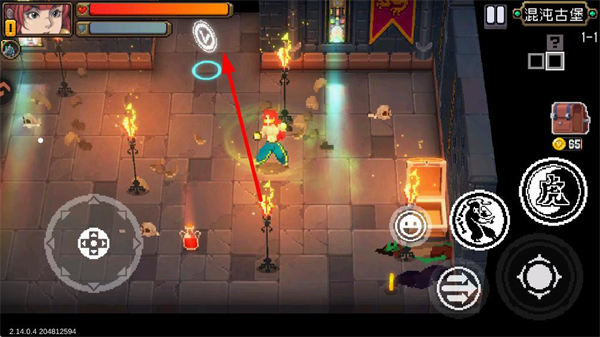 3、探索關(guān)卡時(shí)留意寶箱和道具,看到可互動(dòng)物品時(shí)點(diǎn)擊右側(cè)手掌按鈕拾取,這些道具和裝備能提升角色屬性,助力后續(xù)戰(zhàn)斗。