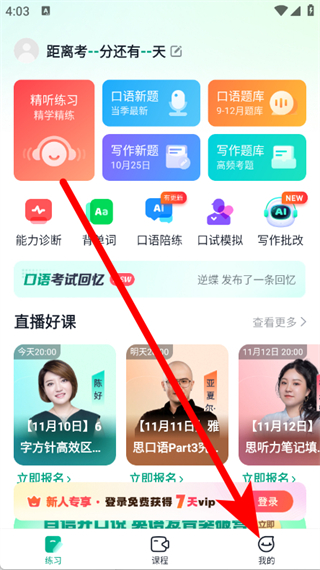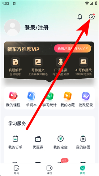 1、打開新東方雅思pro,點(diǎn)擊底部導(dǎo)航欄我的,進(jìn)入個(gè)人中心頁面。