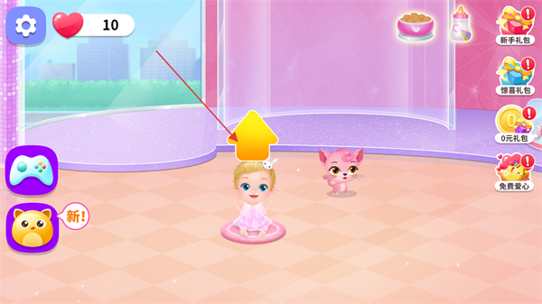 4、當(dāng)寶寶或小動(dòng)物頭上出現(xiàn)黃色箭頭,點(diǎn)擊即可幫助寶寶加快成長(zhǎng)為大人。