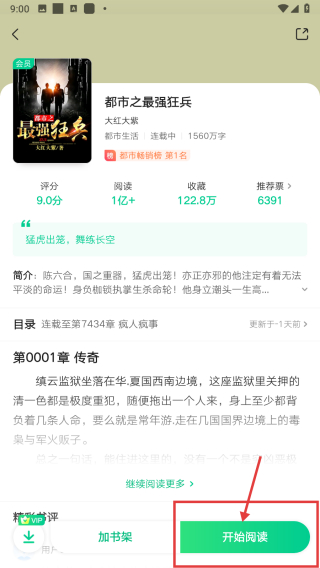 4、在小說詳情頁面,點擊開始閱讀按鈕,開始閱讀小說內(nèi)容。