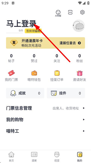 2、在個人頁面,點擊馬上登錄,進(jìn)入登錄頁面。