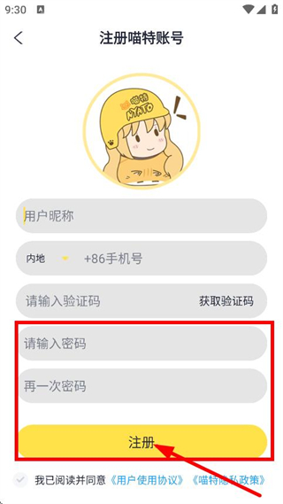5、設(shè)置密碼并再次確認(rèn)密碼,點擊注冊,完成注冊操作。