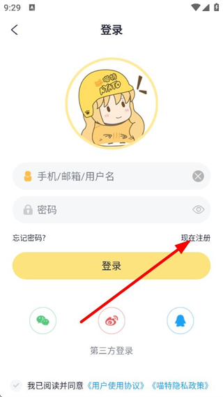 3、在登錄頁面,點擊現(xiàn)在注冊,進(jìn)入注冊頁面。