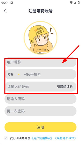 4、輸入用戶昵稱、手機(jī)號后點擊獲取驗證碼,輸入驗證碼。