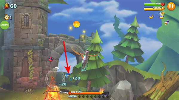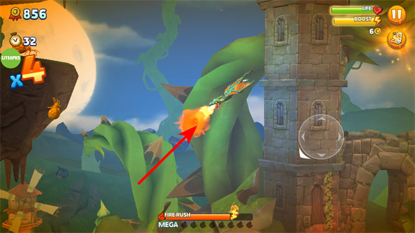 3、運(yùn)用技能,技能運(yùn)用是突破障礙的關(guān)鍵環(huán)節(jié),運(yùn)用后可釋放火焰等技能,清除飛行路徑上的阻礙,保障飛行順暢。
