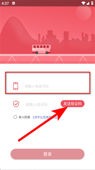 3、在登錄頁面,輸入手機(jī)號碼后,點(diǎn)擊發(fā)送驗(yàn)證碼。