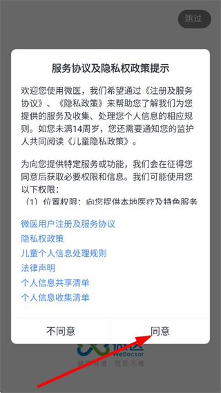 1、在服務(wù)協(xié)議及隱私權(quán)益政策提示彈窗中,點(diǎn)擊同意,進(jìn)入登錄頁(yè)面。