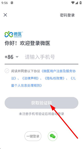 2、在登錄頁(yè)面,輸入手機(jī)號(hào),勾選同意相關(guān)協(xié)議后點(diǎn)擊獲取驗(yàn)證碼。