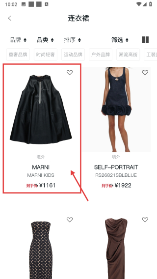 3、在連衣裙商品列表頁(yè)面,選擇MARNI品牌的連衣裙商品,進(jìn)入商品詳情頁(yè)面。