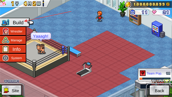 1、點(diǎn)擊菜單欄中的Build按鈕進(jìn)入建筑菜單頁(yè)面,為摔跤會(huì)所搭建新的設(shè)施。