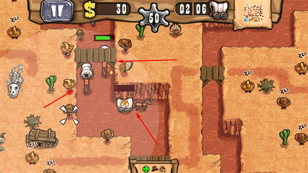 以西部大盜的反派視角為核心題材,區(qū)別于傳統(tǒng)正面角色設(shè)定,帶來(lái)新鮮的體驗(yàn)感,滿足對(duì)獨(dú)特題材的探索需求,讓防御類玩法更具新鮮感與吸引力。