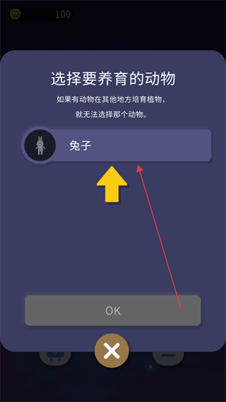 2、選擇要養(yǎng)育的動(dòng)物,如兔子,注意若動(dòng)物在其他地方培育植物,則無法選擇該動(dòng)物。