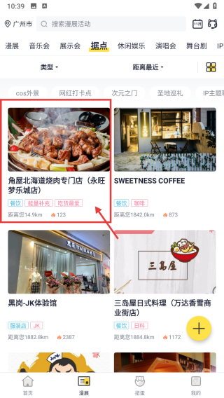 2、在漫展相關(guān)頁面,點擊據(jù)點分類標(biāo)簽,進(jìn)入據(jù)點列表頁面。
