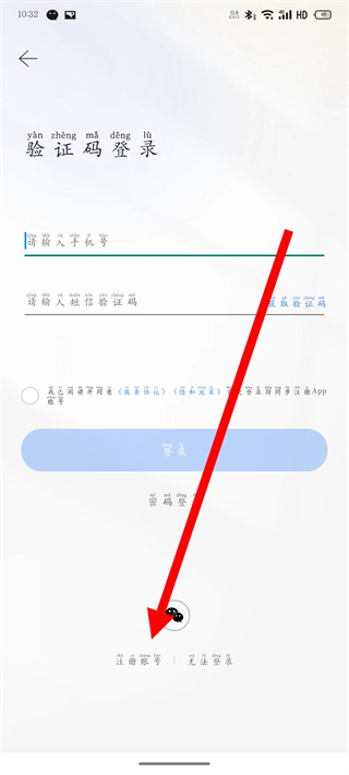 3、在登錄頁面,點(diǎn)擊注冊賬號,進(jìn)入注冊賬號頁面。