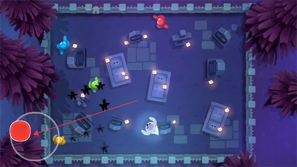 1、操控角色在墓地場景中移動(dòng),躲避幽靈的追擊,同時(shí)利用墓碑等障礙物進(jìn)行掩護(hù)。