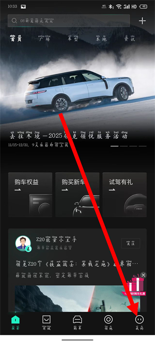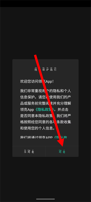 1、打卡領(lǐng)克汽車,在隱私保護(hù)指引彈窗中點(diǎn)擊同意。