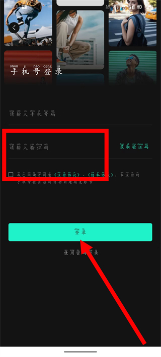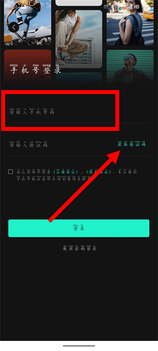 3、在登錄頁(yè)面,輸入手機(jī)號(hào)后,點(diǎn)擊獲取驗(yàn)證碼。