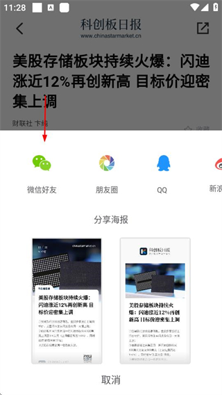 3、在分享選項中,選擇微信好友,可將該資訊分享到微信。