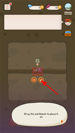 2、布置工作臺時,將其拖動到合適位置后,點擊對勾按鈕可確認放置,完成工作臺的布置,后續(xù)制作物品奠定基礎。