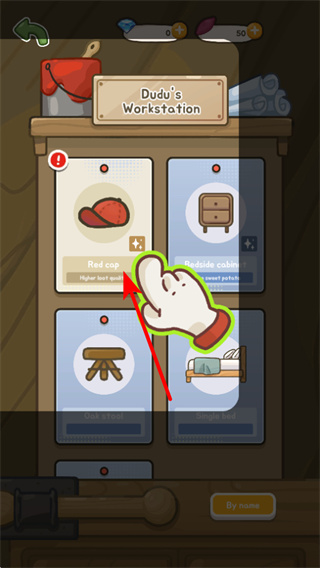 4、在工作臺操作界面中,點擊選項,可開始制作紅色帽子,制作完成后能提升角色屬性或用于其他用途,助力進程。