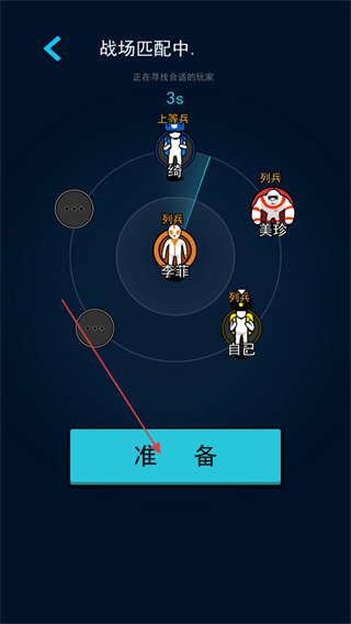 1、進(jìn)入游戲后點(diǎn)擊開始挑戰(zhàn),系統(tǒng)將會(huì)隨機(jī)匹配玩家加入戰(zhàn)場(chǎng),點(diǎn)擊下方準(zhǔn)備按鈕進(jìn)入地圖。