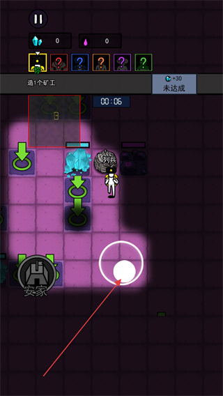 3、在地圖內(nèi)找到綠色箭頭標(biāo)志位置,可以點(diǎn)擊左下角的安家按鈕在此處建造基地。