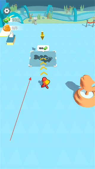 1、操控角色移動到魚的圖案區(qū)域,花費(fèi)100金幣解鎖新區(qū)域。