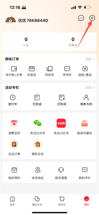 1、在優(yōu)聯(lián)云購首頁,點擊右下角我的選項,進入個人頁面。